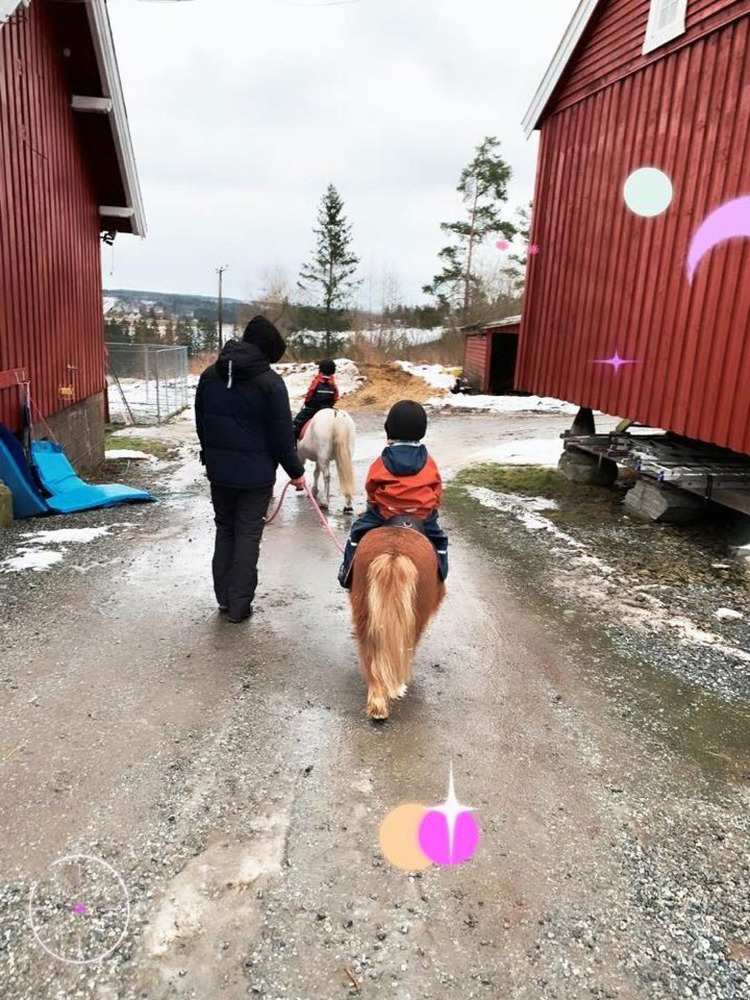 Ridningen foregår i hovedsak på ridebanen og i terrenget rundt på gården vår. Mål: - Oppleve glede av å være nær dyr - Oppleve mestringsfølelse - Utvikle trygghet på hesteryggen - Øve balansen- Gi barna de gode samtalene – en til en – voksen og barn - Legge til rette for god språkstimulering og språkutvikling - Lære å starte, stoppe og styre hesten